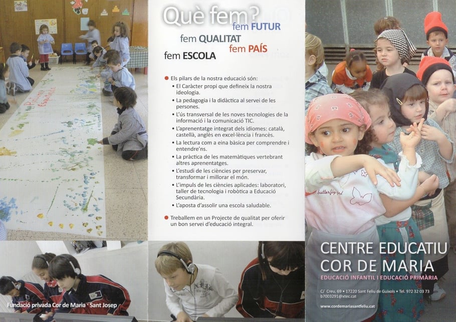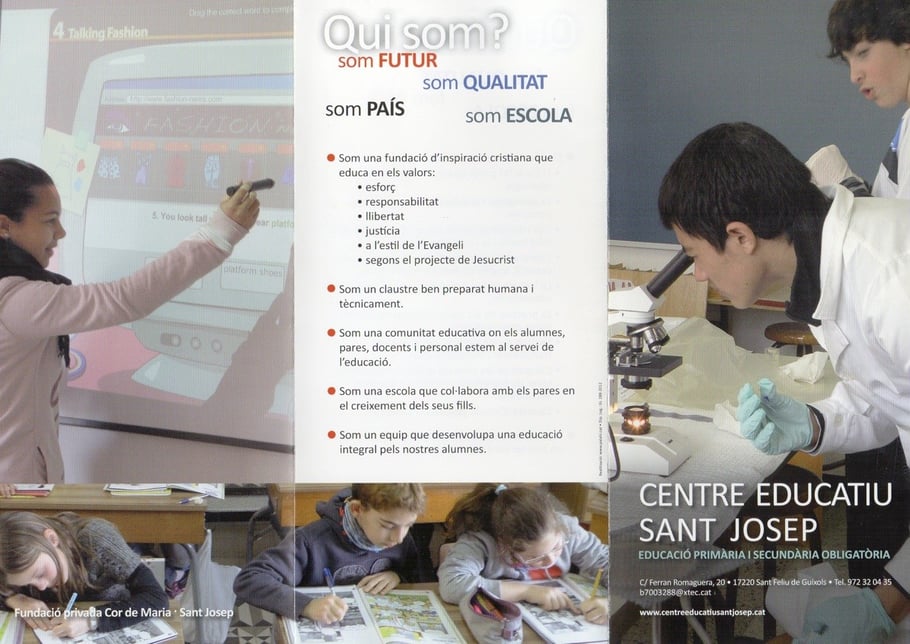 D’aquesta manera, la Fundació ofereix un projecte educatiu únic de 0 a 16 anys, agafant el millor de la seva història i adaptant-se als temps, prenent com a base la formació integral de l’alumnat: una bona formació acadèmica, aprenent de manera competencial, significativa i cooperativa, junt amb un sòlid treball dels valors humans i les habilitats socials.